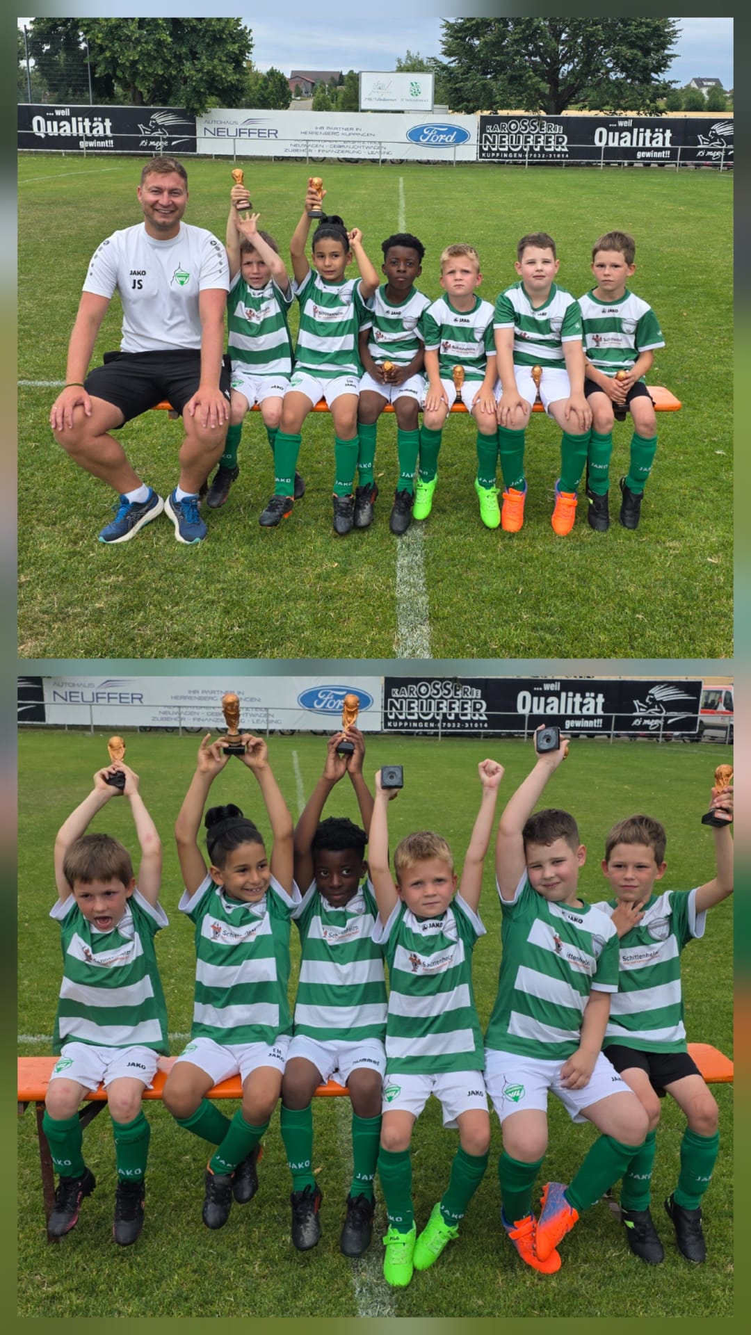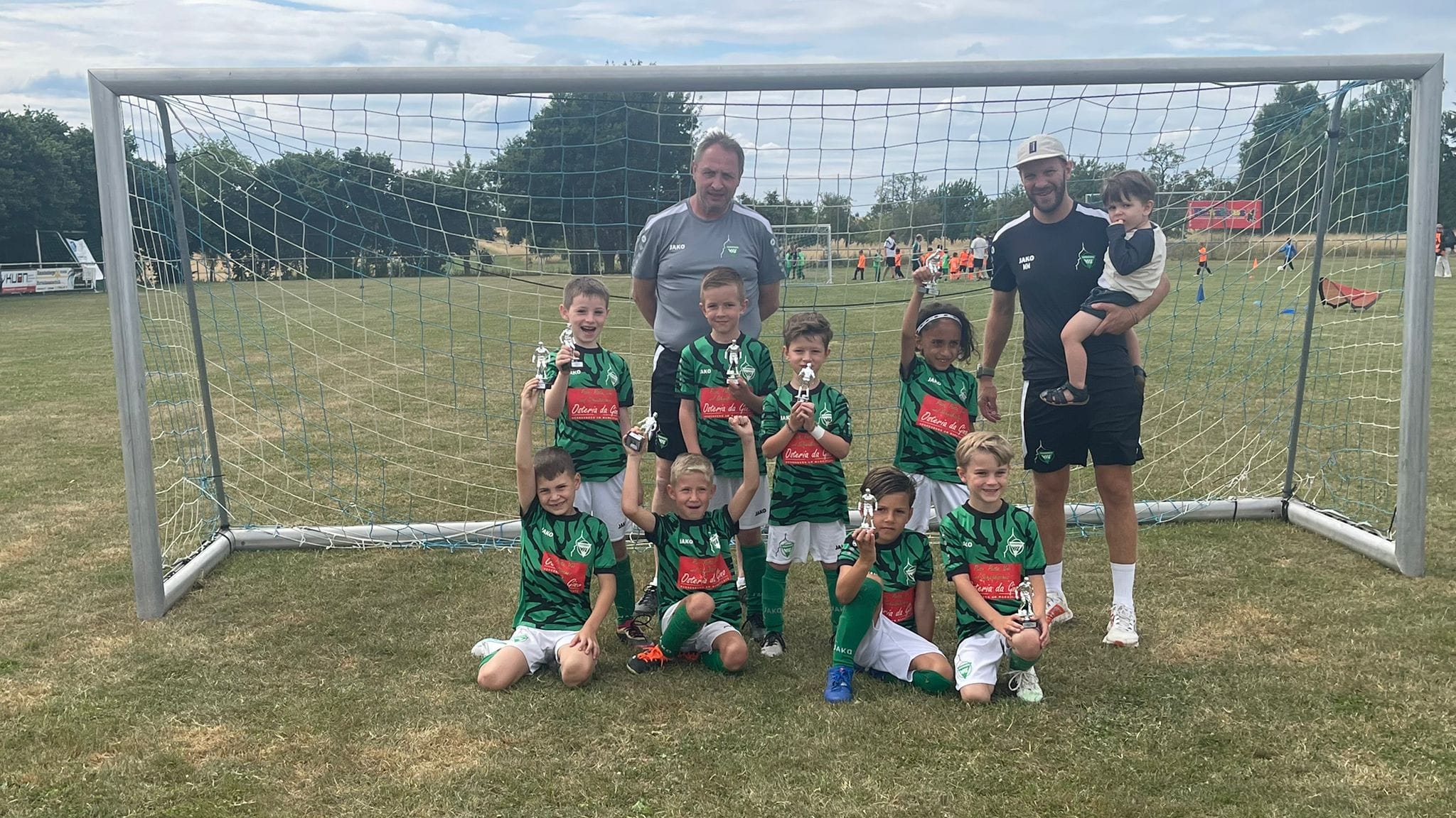 Bei sommerlichen Temperaturen traten unsere Bambinis in Nufringen ursprünglich mit zwei Teams an. Aufgrund der kurzfristigen Absage eines anderen Vereins konnten wir spontan ein drittes Team stellen – so kamen alle Spieler zu noch mehr Einsatzzeiten. In insgesamt 12 Spielen erzielten unsere Teams neun Siege, zwei Unentschieden und eine Niederlage. Dabei wurden 32 Tore geschossen. Besonders erfreulich: Leonidas und Dominion feierten ihr Debüt im Herrenberger Trikot.